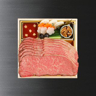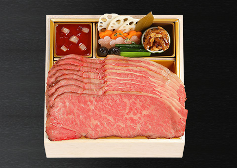 壱の重には約320g計8枚(4人前)のローストビーフが詰められています。 -