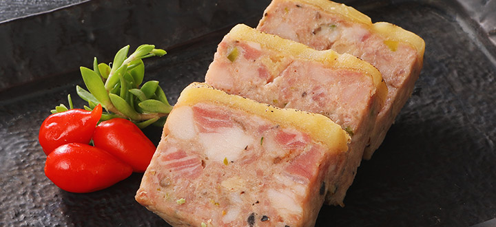 ミートローフ西京味噌と抹茶、京都らしさをモチーフに仕上げた鶏の和風ミートローフです。